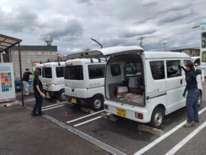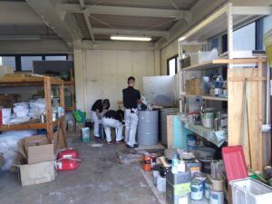 本社周辺の草取りから始まり、倉庫内・本社内の清掃、社有車の洗車と午前中をかけて