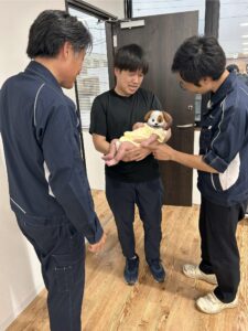 今日は育休中の男性社員Hさんが💕かわいいかわいい赤ちゃん💕と一緒に会社に遊びに来てくれました👏。