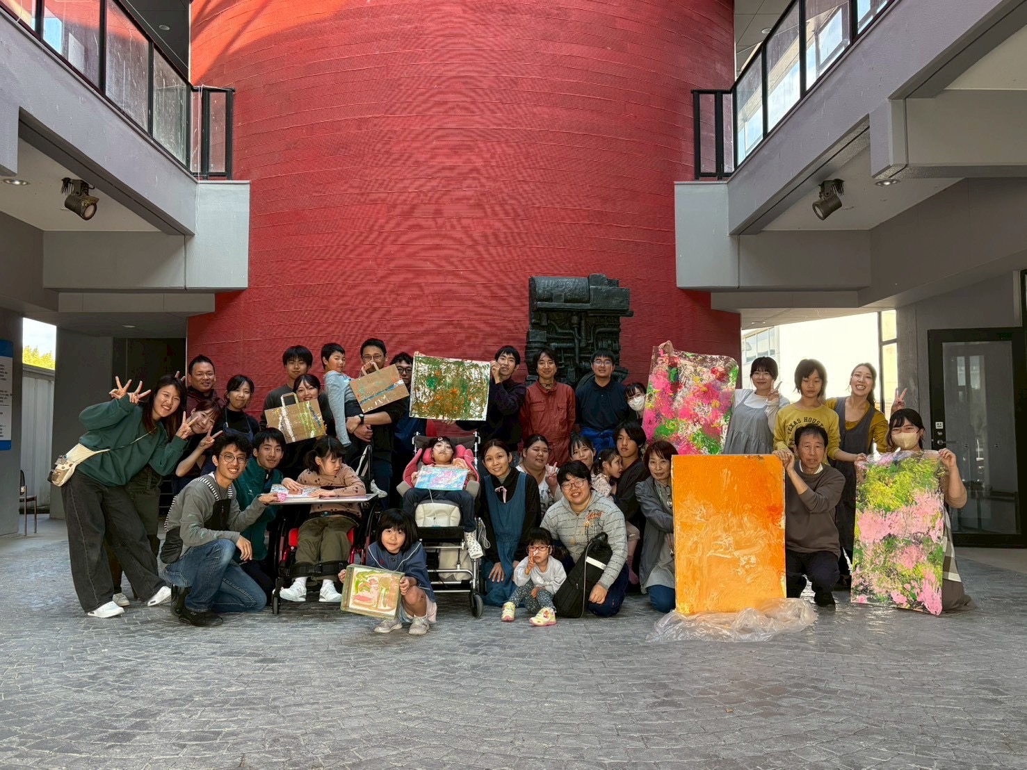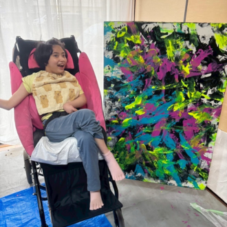 機能訓練の一環としてアート活動を実施。子どもたちの身体の動かし方、得意な感覚、興味や個性に合わせた制作方法を探りながら、世界にひとつの表現を生み出します。地域の方々と共同で制作するモニュメント作品も手がけ、アートを通じて社会とつながる機会を創出。愛知県美術館や松本市美術館で毎年開催し、多くの方に作品を届けています。
